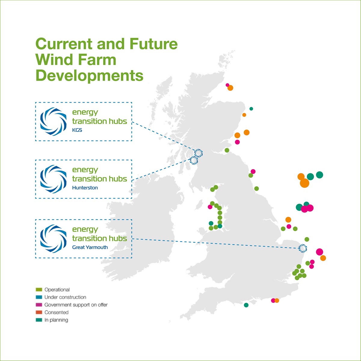 Our strategically-located, Energy Transition Hubs are enabling the UK’s renewable energy transition by offering outstanding capabilities for Oil & Gas maintenance and decommissioning as well as the development of on and offshore wind farms.