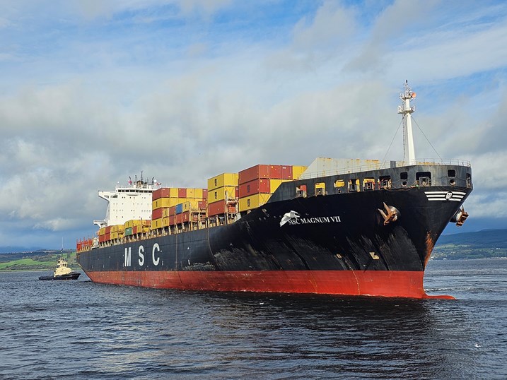 The Port of Greenock hosted the 300m long MSC Magnum VII, which has a capacity of 6,750 TEUs (twenty foot equivalent units), on Saturday morning (7 October.)